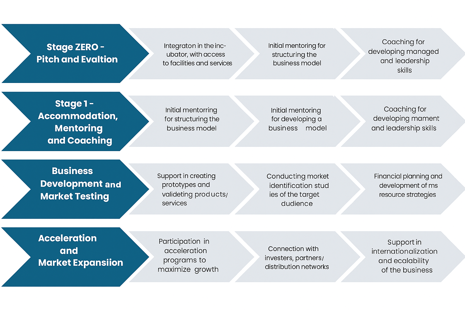The incubation process of PLAY is divided into several phases, designed to ensure the success of startups and entrepreneurs.